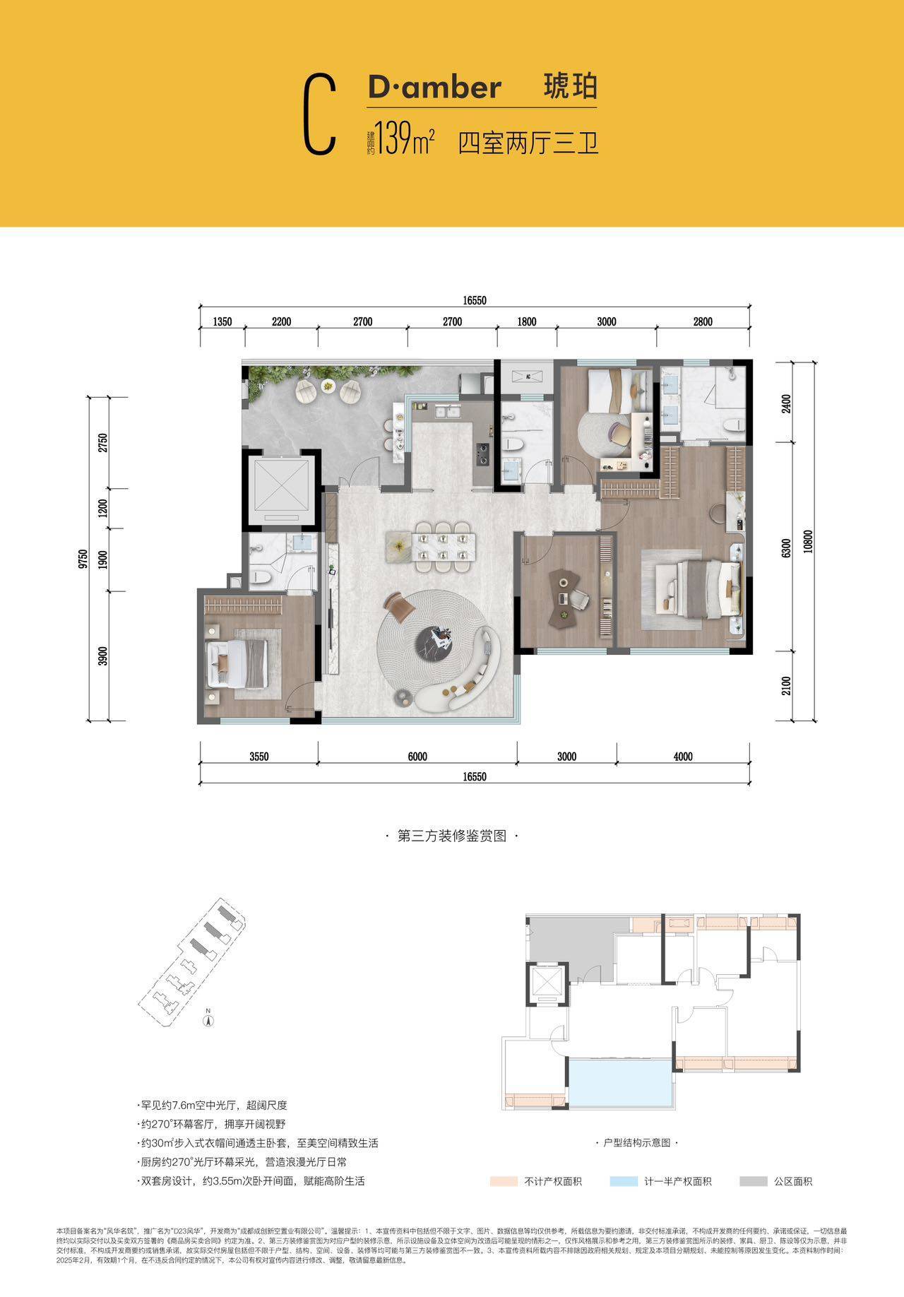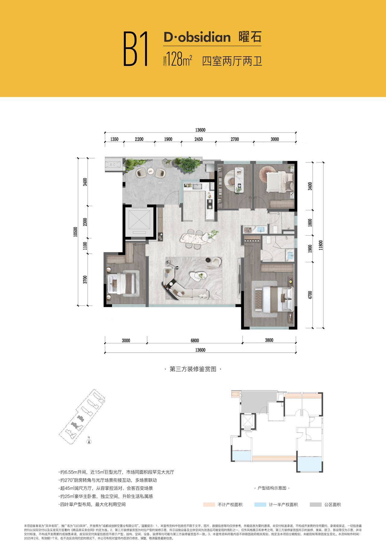 厨房270度花圃环幕采光、15㎡巨型光厅、四叶草户型结构、全面屏落地玻璃