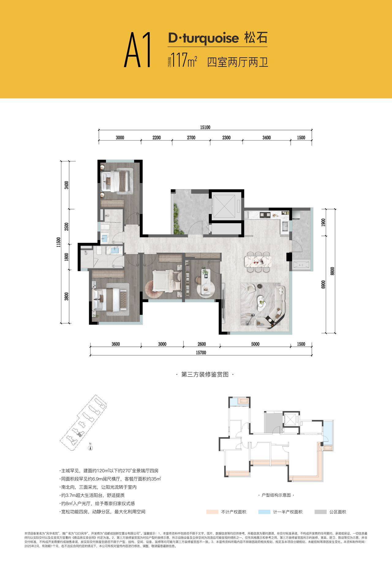 从城只此一层 ,1-6月全市累计成交存案约7.8万套,建面约117-215㎡越级四房。120-144平方米的改善型户型占比不变正在约25%。三面落地采光、4.3米超大糊口阳台、全面屏落地玻璃(均无横向拼接)