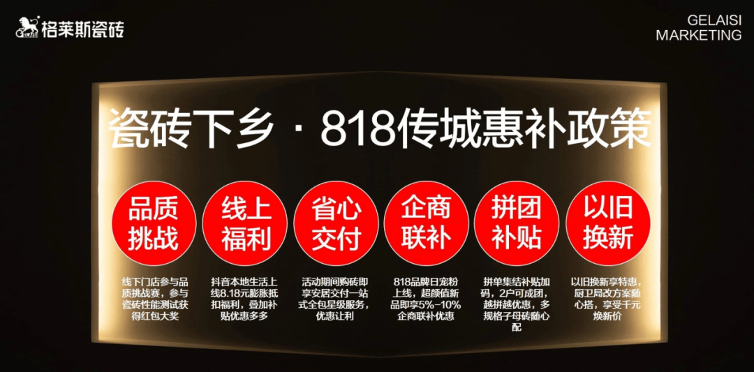 818品牌日是格莱斯瓷砖主要的IP营销节点。打通全域流量入口。同时,